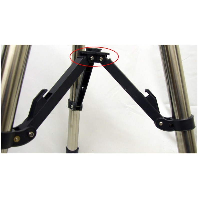 Central attachment of the accessory tray for Celestron Astromaster. Joins the tray to the rods that connect to the tripod.