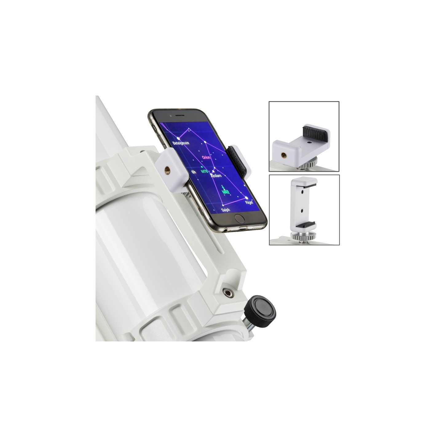 The telescope consists of arefracting telescopeAnd aequatorial mountIncluding a tripod. The optics have a152 mm openingWith afocal length of 760 mmAnd therefore afocal ratio of F5. The refractor has many additional features, such asrings with carrying handleAnd integratedcamera support, 31.7 mm (1.25") zenith mirror or 8x50 finder. With equatorial (also called parallax) mountEXOS-2, one axis is aligned with the pole star. When tracking a celestial object, only one axis needs to be moved, which makes tracking much easier compared to mounts that only have left/right and up/down axes (altazimuth mount). With the8x50 finderIncluded, celestial objects are easily found. The finder also has a reticle for more comfortable observation in the dark. The mount also features a polar finder that greatly facilitates northward alignment. With two flexible shafts connected to the fine mechanical transmission, objects can be precisely adjusted and tracked in the eyepiece. The stainless steel tripod is height adjustable, ensuring a comfortable observing position.