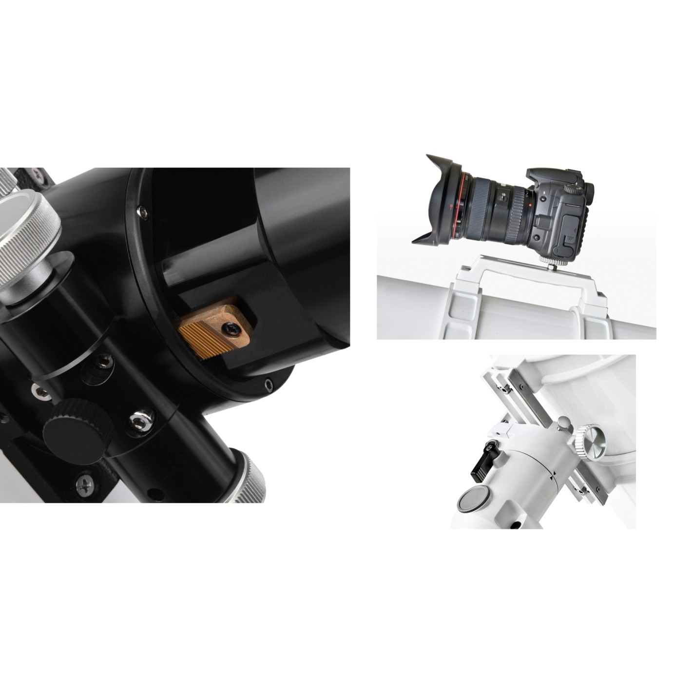 - Dovetail with stainless steel clamping surface (44 mm universal dovetail for GP/EQ5/LXD75)