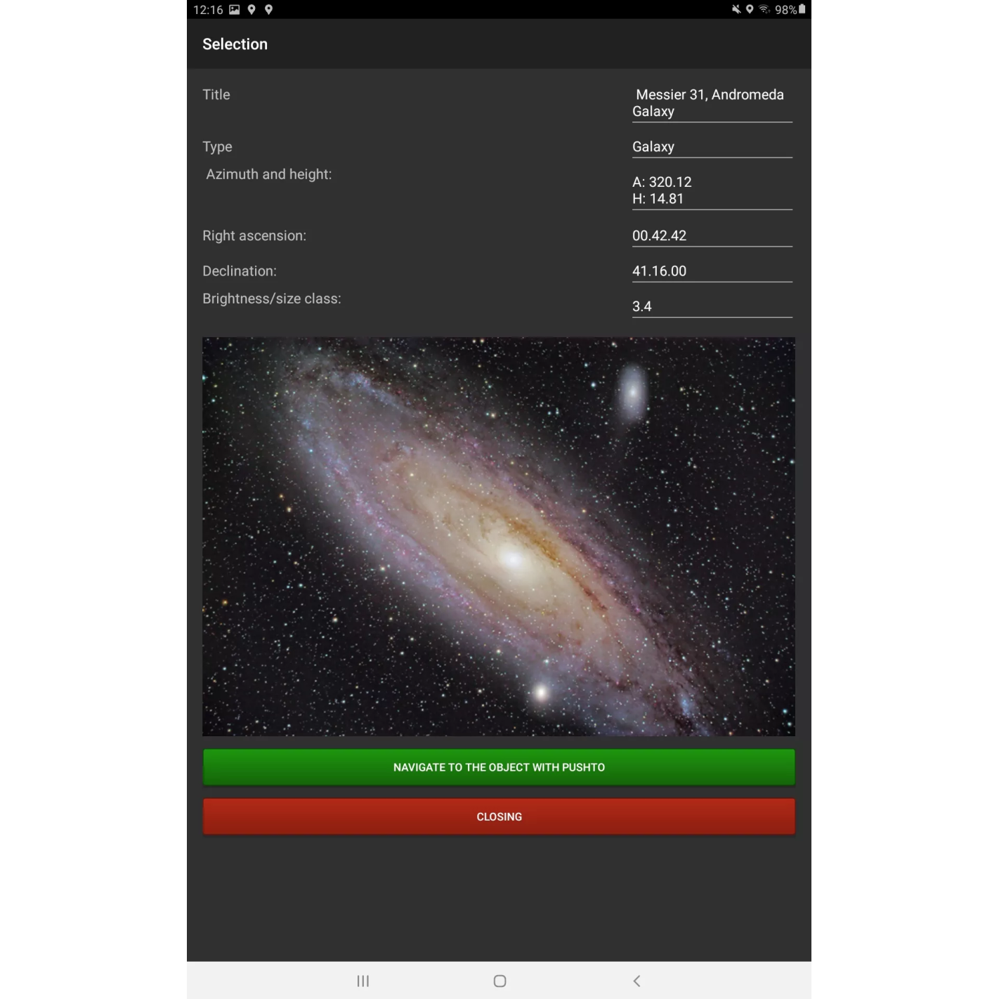 Once set up, choose an object on the PushTo star map simply with a tap and navigation begins. Directional arrows, which change length and color as you approach the object, will guide you safely to your destination. The telescope's movement is transmitted in near real-time to the star map. Once you have reached your destination, you can admire the desired celestial body immediately. Alternatively, you can choose an object from the extensive database. Or make it even easier with one of the preconfigured celestial tours for spring, summer, autumn and winter. And you can save your favorite objects to find them quickly at any time.