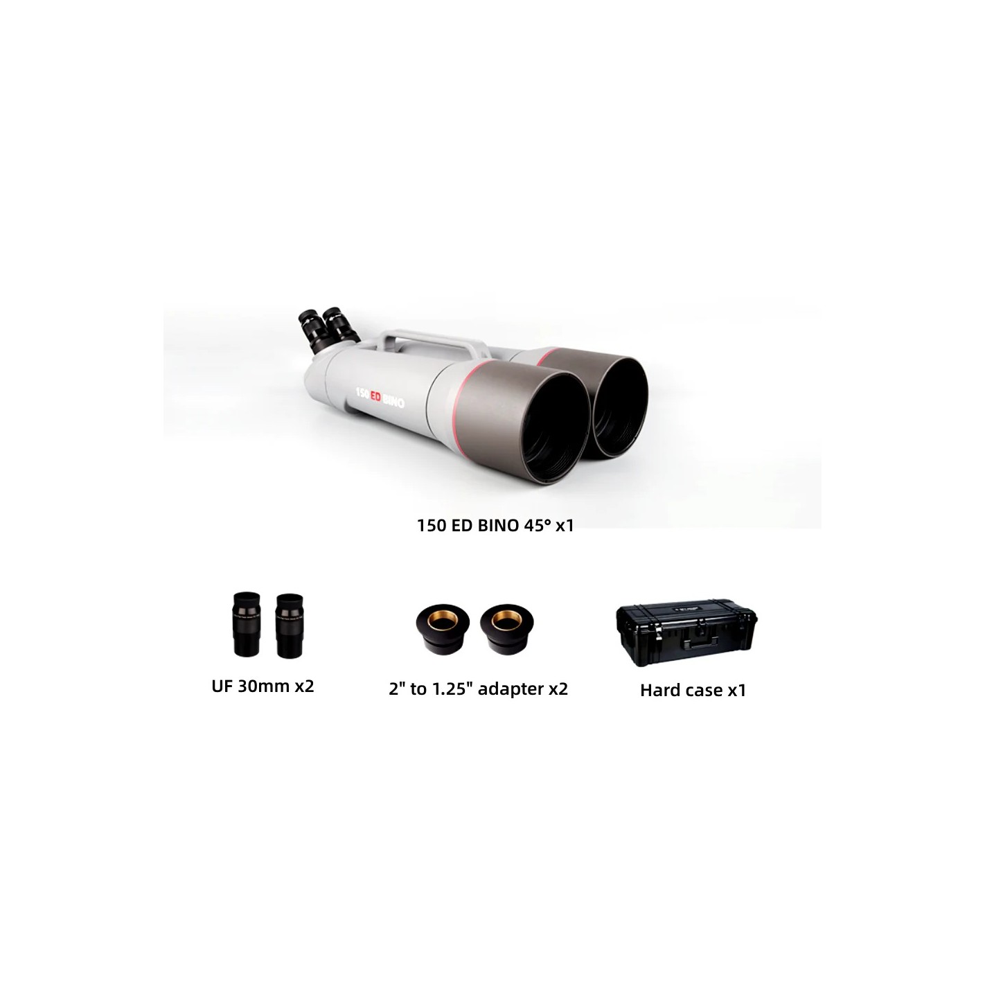 Discover the giant ED Sky Rover 150mm 45° Sky Rover binoculars, designed to deliver a breathtaking viewing experience. With an extra-large 150mm diameter and 840mm focal length, these binoculars allow light to be optimally transmitted, displaying brighter objects and sharper details than ever before. Their double-split structure design with ED glass maximizes light utilization and effectively reduces chromatic dispersion, outperforming conventional mirror systems. In addition, they feature super-large prisms, replaceable eyepieces and IPX7 waterproof construction, ensuring accuracy, versatility and durability for astronomical observation or outdoor activities.
