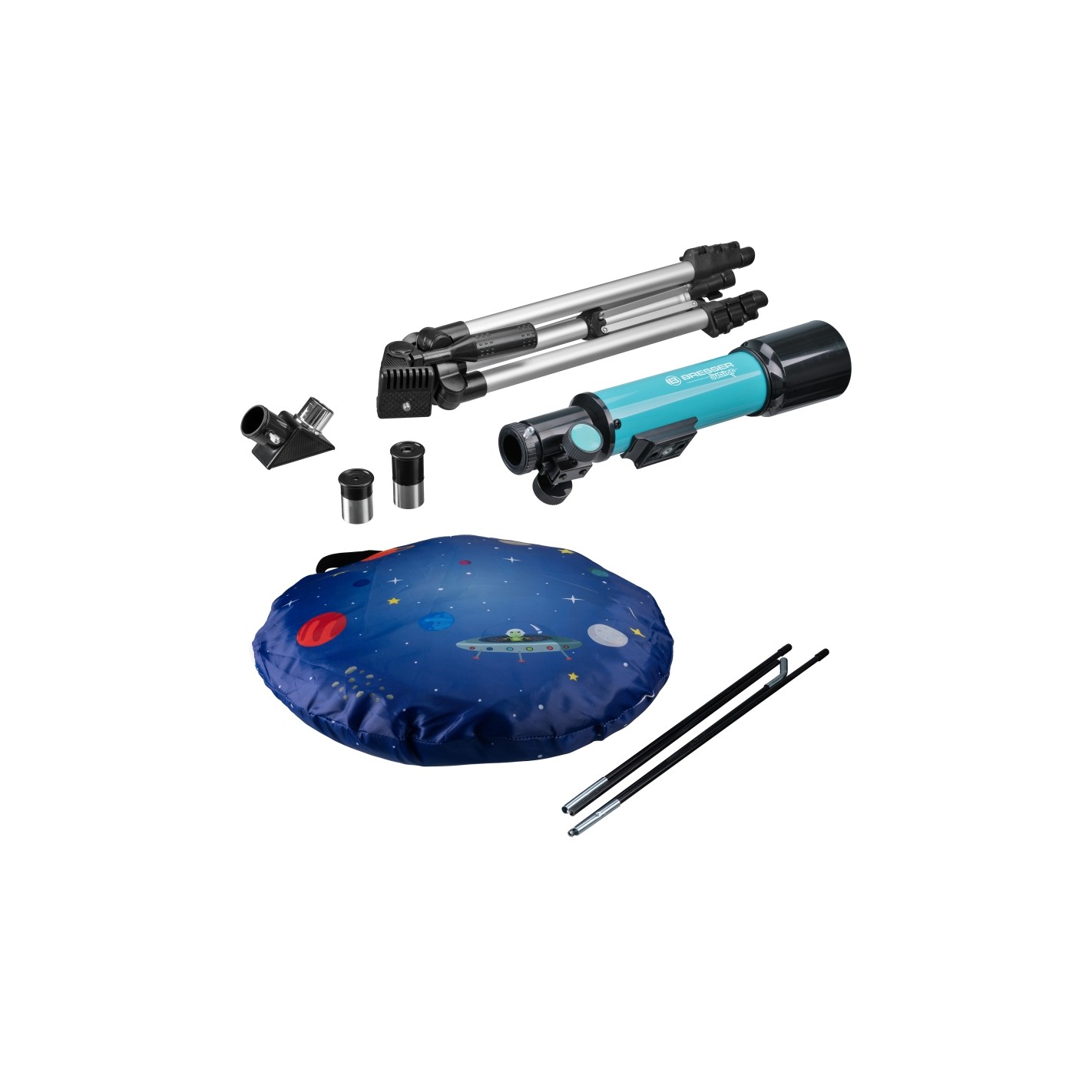 - The set includes a telescope for children aged 8 years and up, as well as a tent in the BRESSER Family astro design