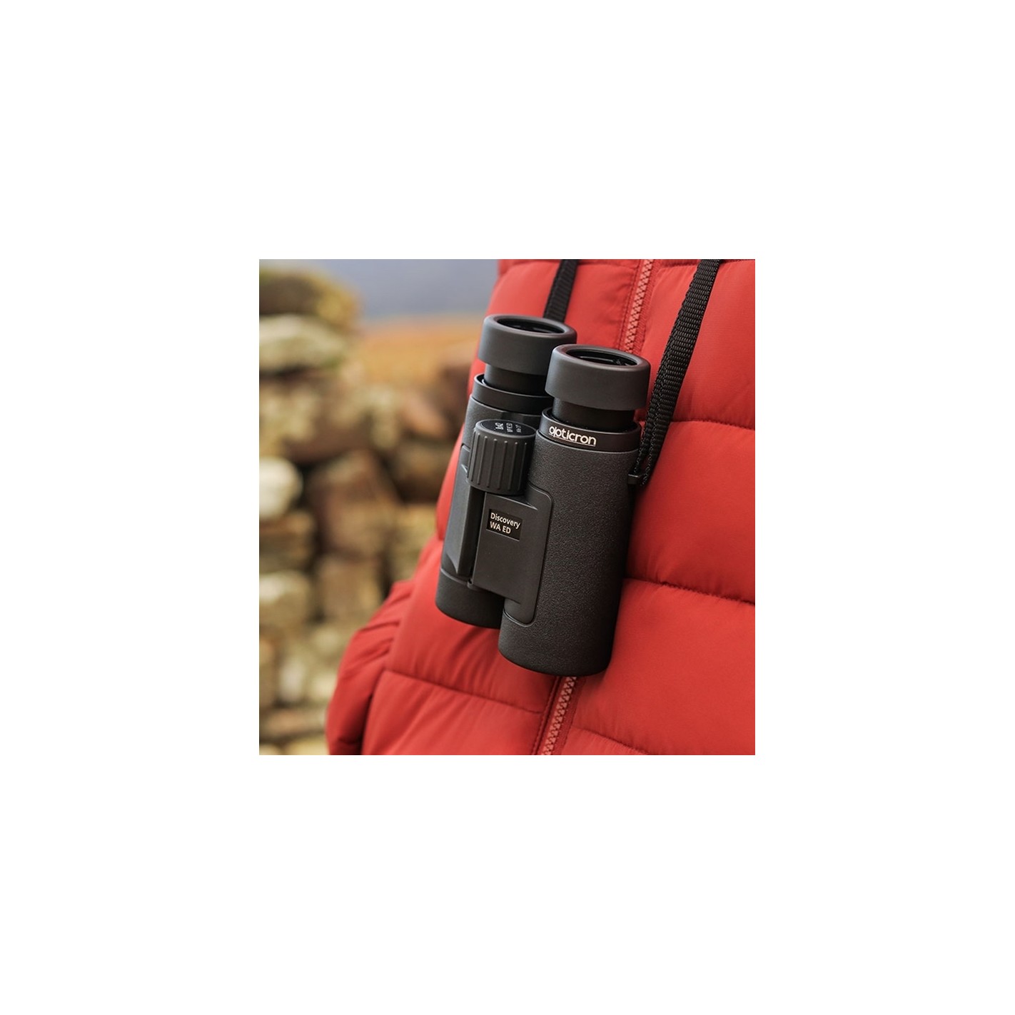 Discovery WA ED binoculars are supplied in a soft case with rain protection, neoprene strap and rubber objective lens covers.