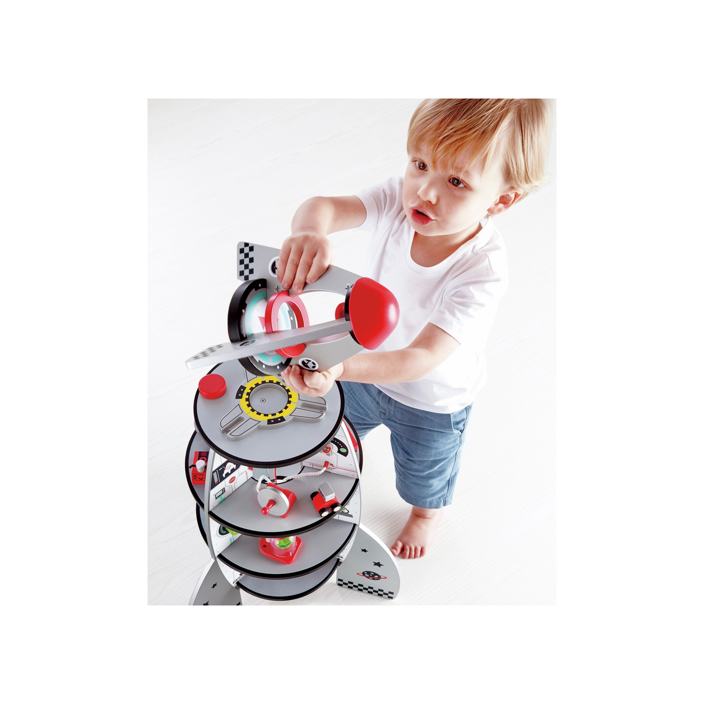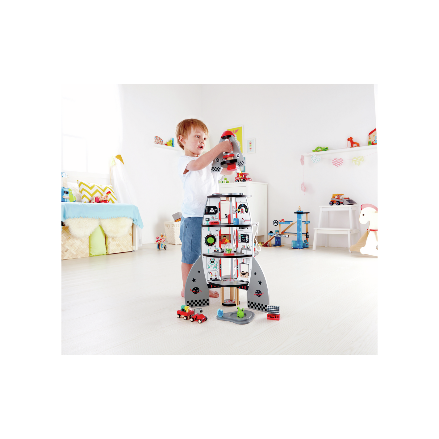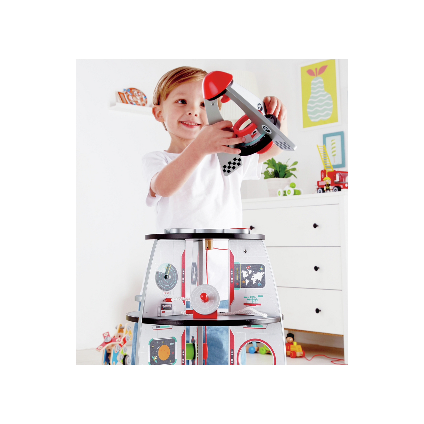 Blast off to intergalactic adventures with Hape's Four-Story Space Rocket - a wooden toy carefully designed to stimulate imagination, collaboration and role-play in little ones.