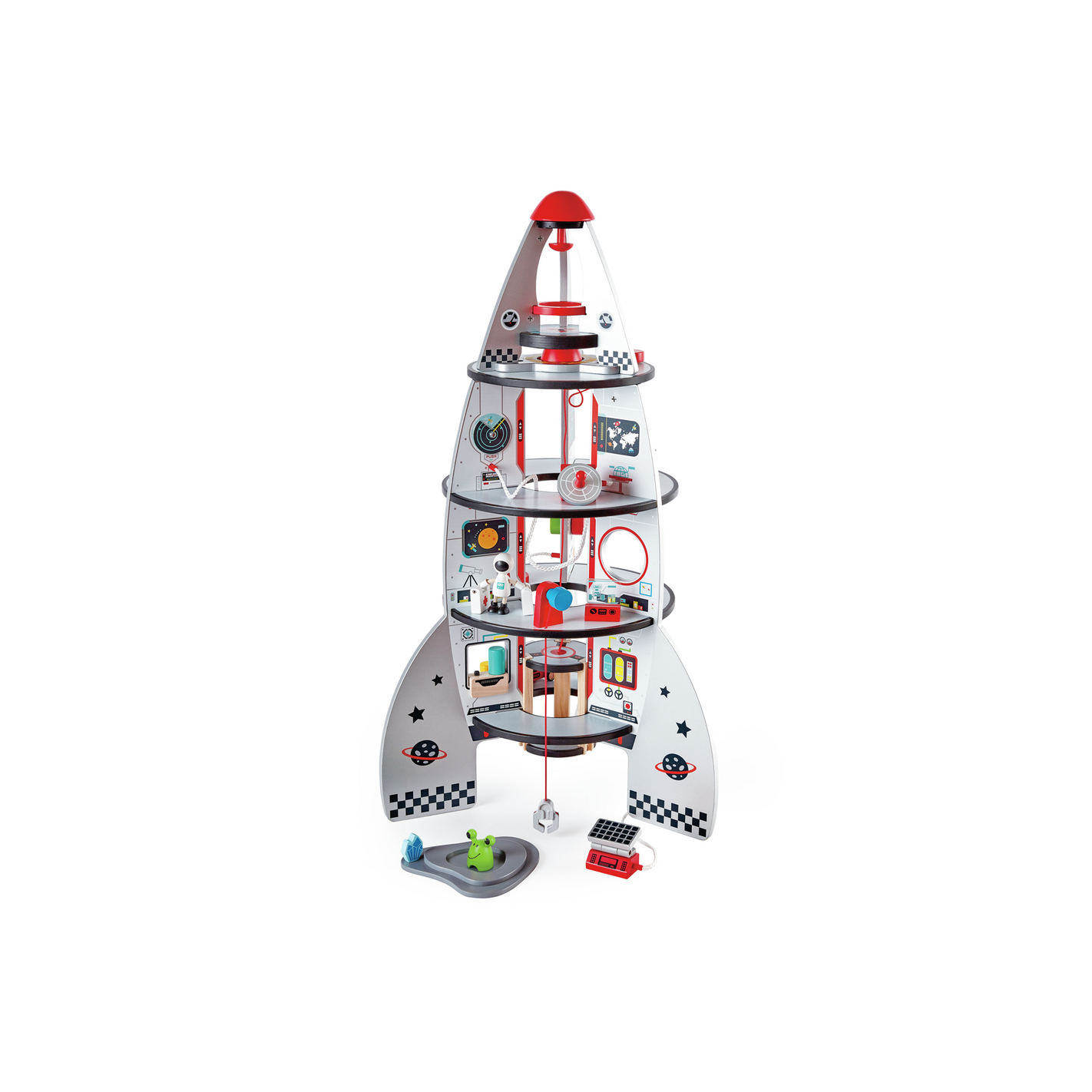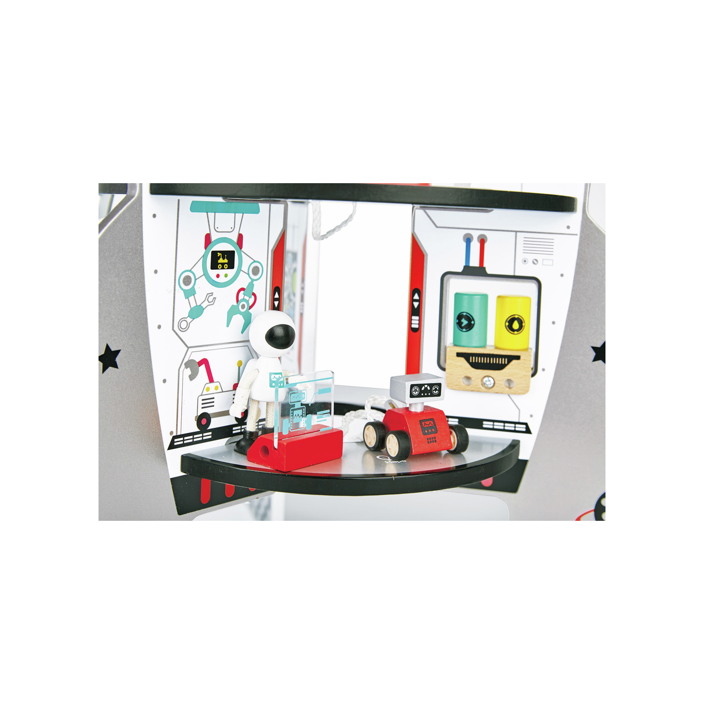 twenty-piece wooden space rocket has four floors with rooms to explore and discover the ship's functions! It even comes with detachable planetary landing pad for the crew to investigate the planet of the