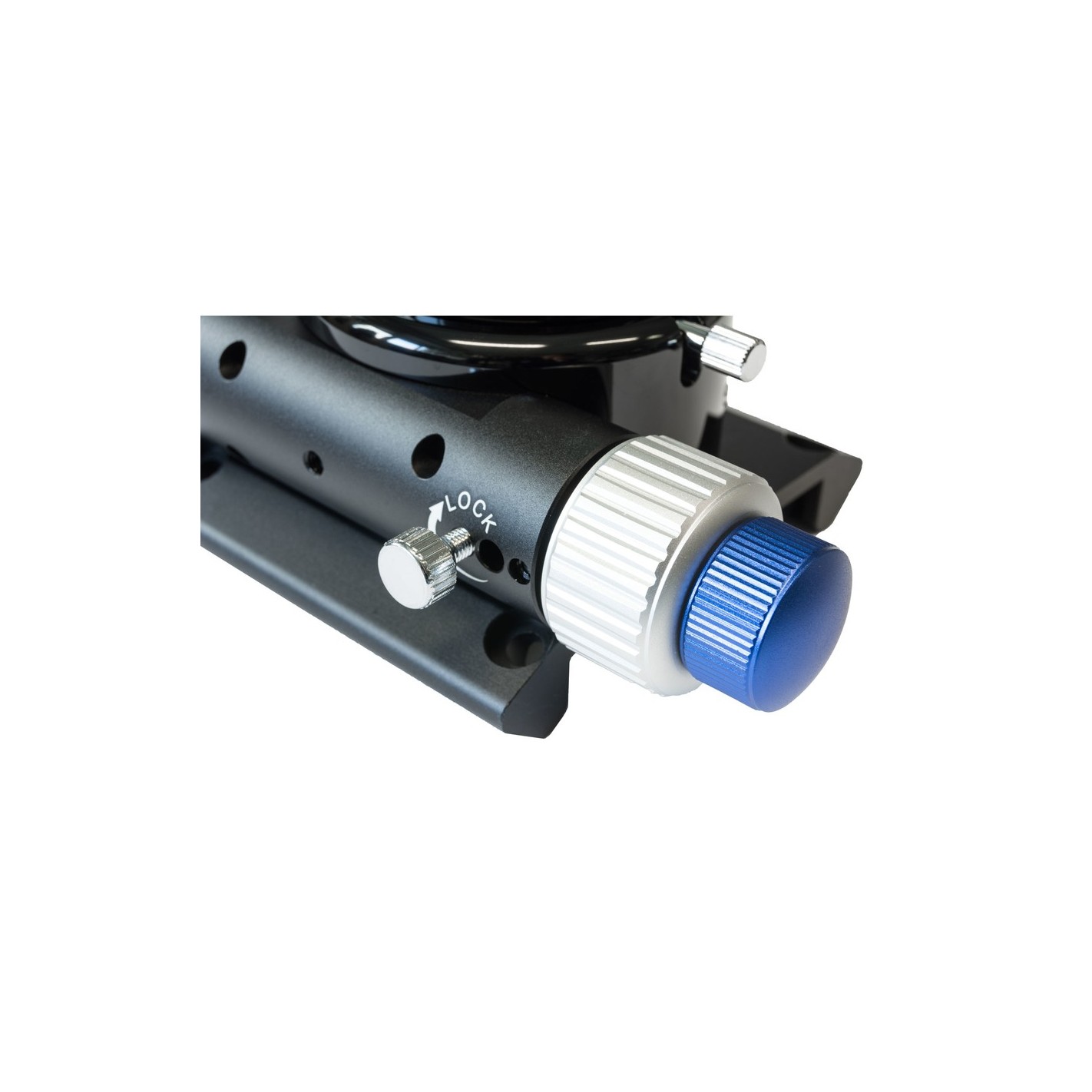 The entire focuser is made of anodized aluminum, which guarantees maximum performance in terms of stability and reliability. This version of the focuser is equipped with a rack and pinion system with Crayford type ball bearings for maximum rigidity.