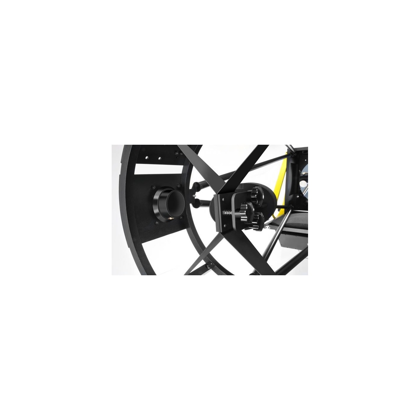 The combination of large bearings for movement at height with a very robust but very light aluminum construction allows precise and smooth movements even at high magnifications. The position of the focuser is also already optimized for the attachment of a coma corrector to improve the equipment even further.