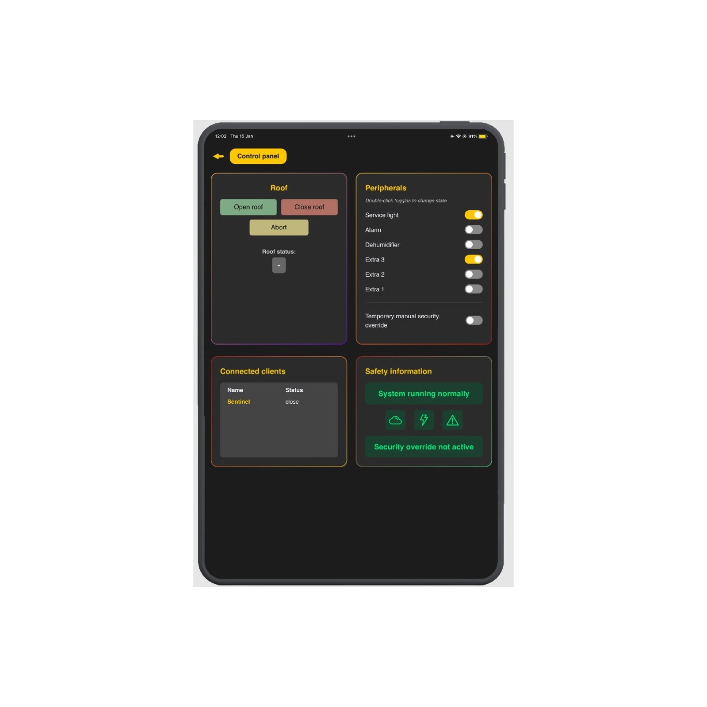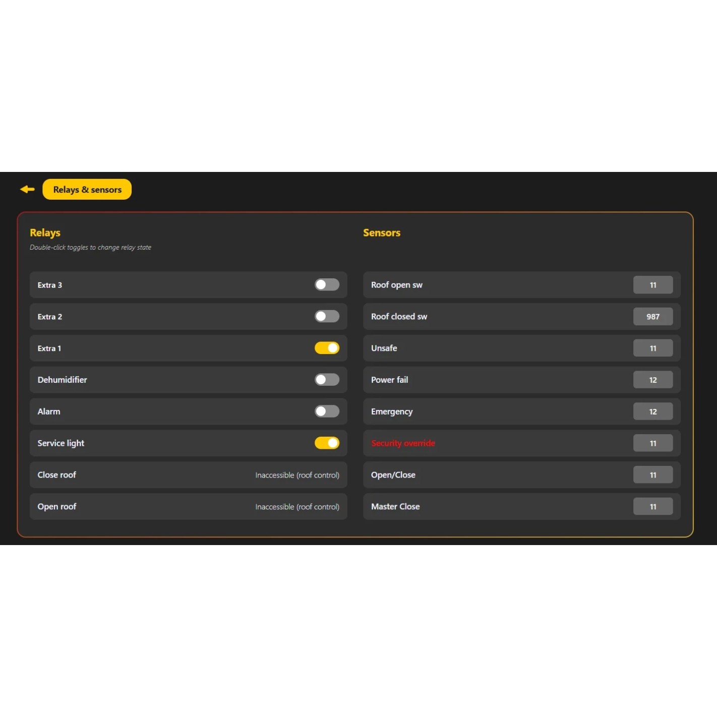 - control the roof from the public control panel or via APIs