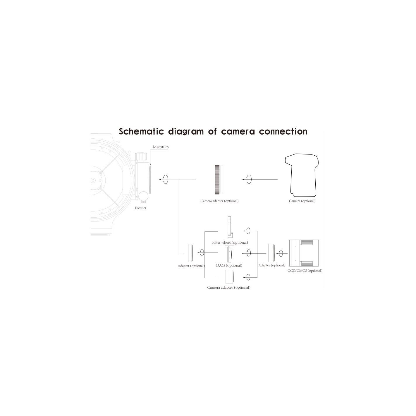 ♦ Easy adaptation of the camera via the M48x0.75 connection thread of the focuser. Working distance is 55 mm.