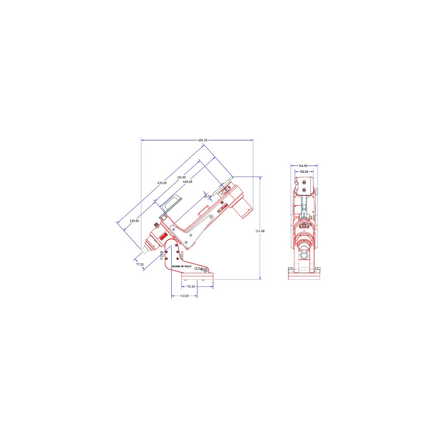 To allow the use of refractors longer than approximately 500 mm, an optional accessory has been made to distance the telescope from the mount flange to allow passage over the AR axis. A special kit is also available which, besides distancing the telescope from the mount, allows the placement of a small guide tube also obtaining a better balancing of the telescope, (with this configuration it could be necessary to perform the inversion of the telescope in the meridian pitch in case the telescope hits the tripod). However, the larger cantilever of the single-arm system will allow a larger tube orientation angle compared to the classic German equatorial mounts.