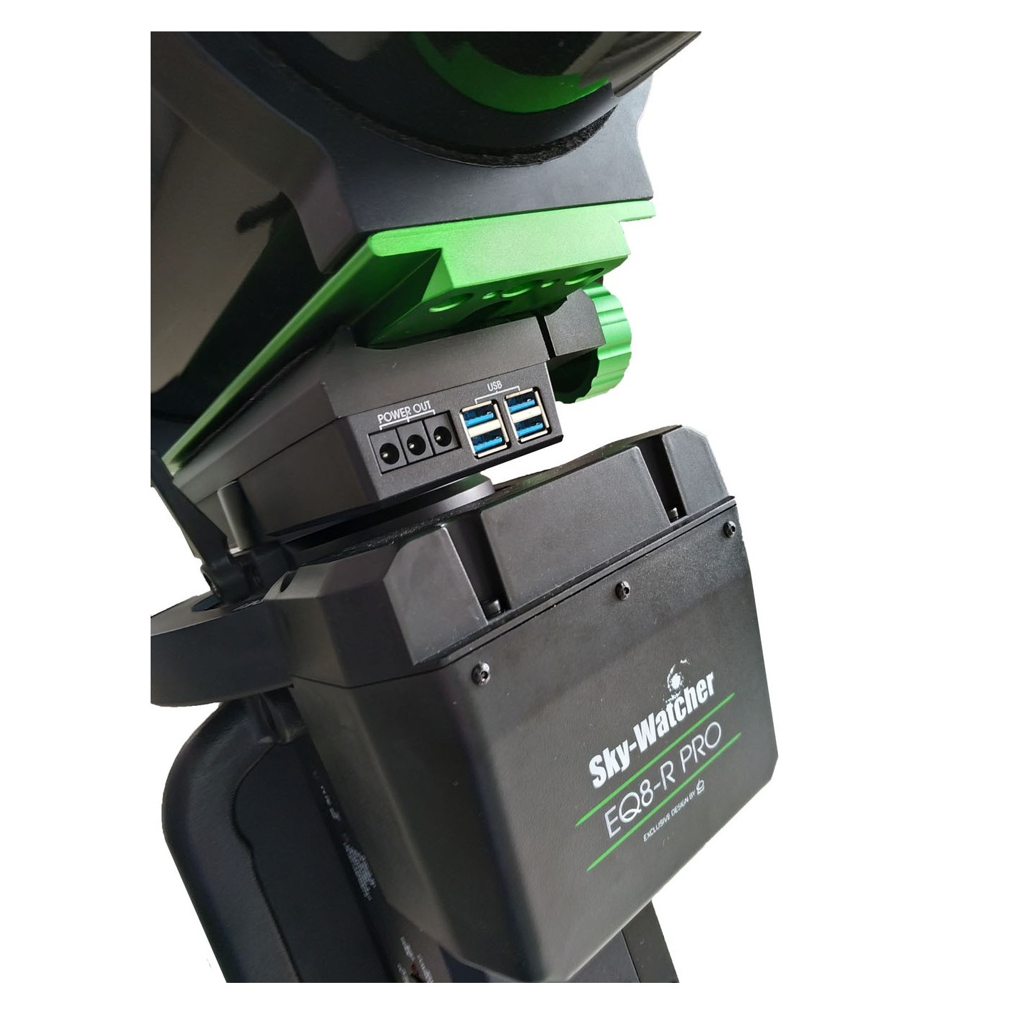 The SKYWATCHER EQ8-R PRO mount is equipped with a SNAPport that can control the camera shutter. Working with the CAMERA CONTROL function of the SYNSCAN control knob , the user can program the time of exposures when doing astrophotography. Up to 8 groups of different combinations of "Number of frames &exposure-times" can be found on the SYNSCAN control knob . For more detailed information, it is recommended to read the instruction manual of the SYNSCANcontrol .
