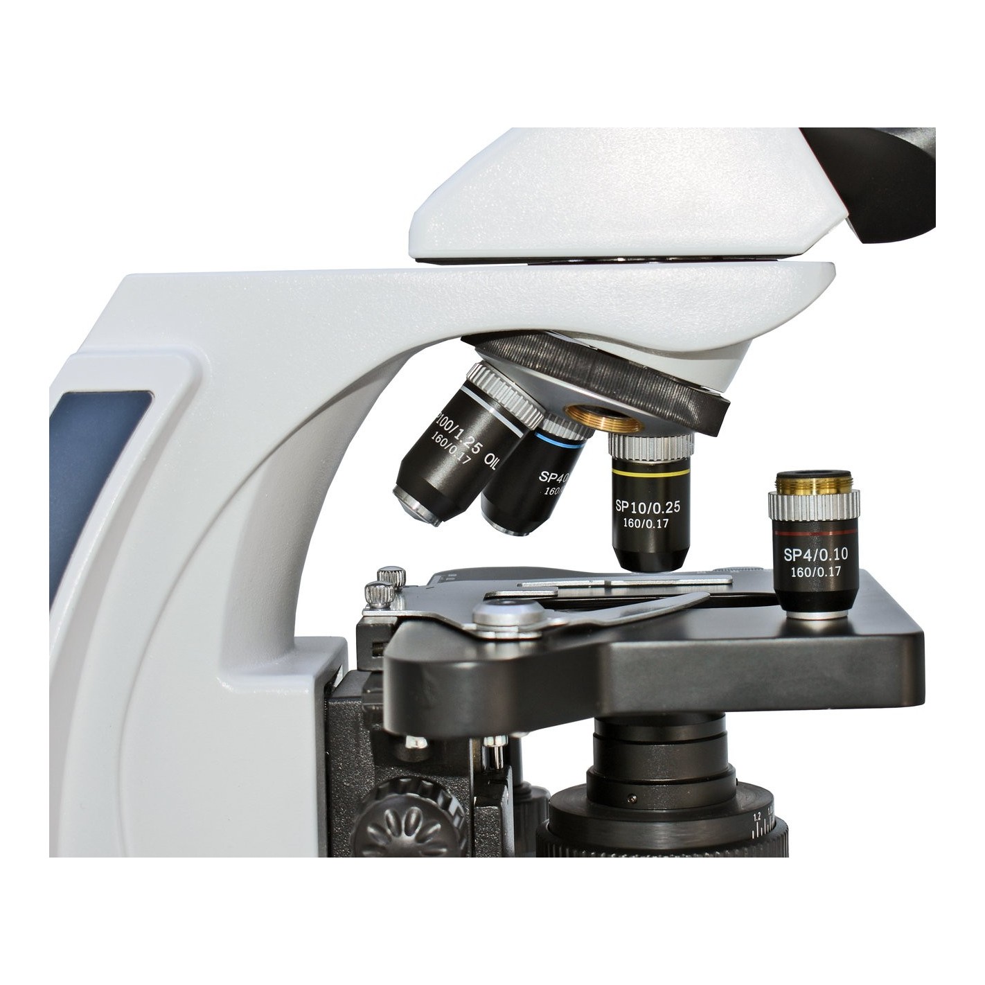 - Objectives: DIN ePlan High Resolution Infinity, 4x (N.A. 0.10), 10x (N.A. 0.25), 40x (N.A. 0.65), 100x (N.A. 1.25) oil immersion. The 40x and 100x objectives are spring loaded (to protect the slide).