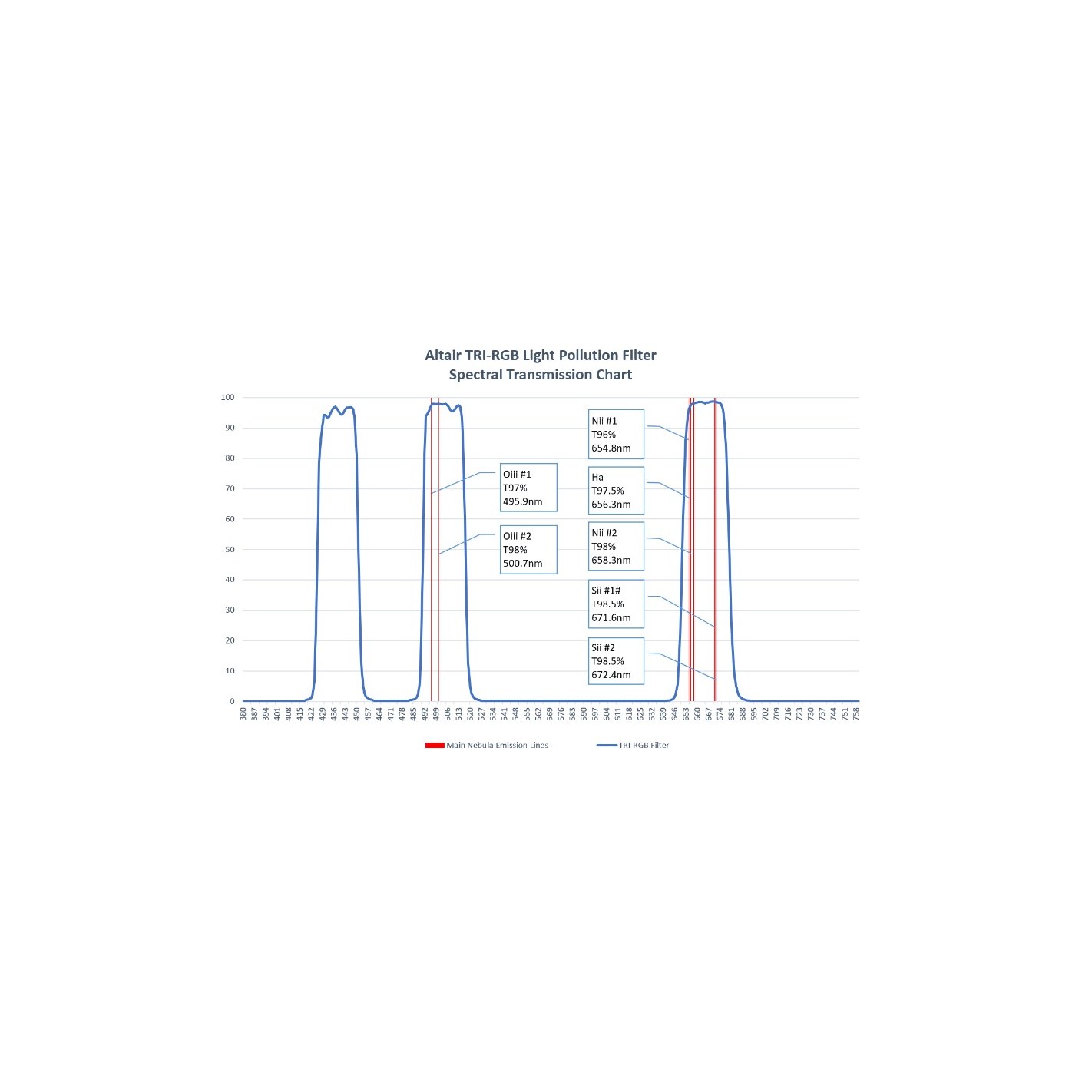 Altair TRI-RGB filter transmission characteristics: