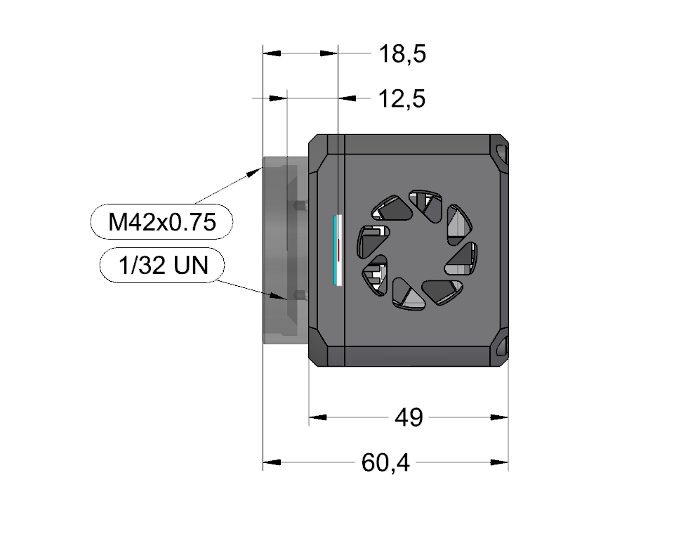 Adapter with 1/32 UN thread and 12.5 mm rear focal length (CS mount).