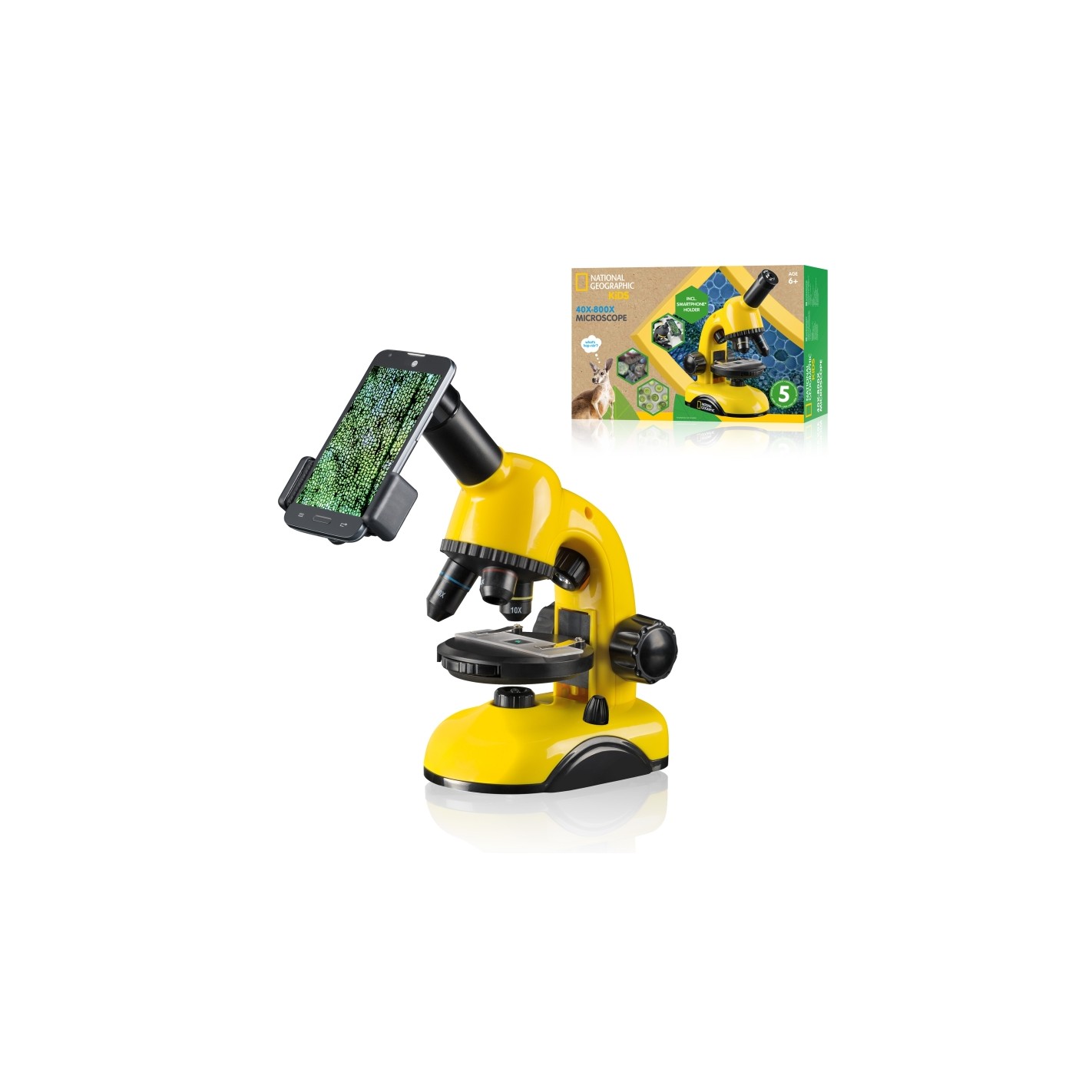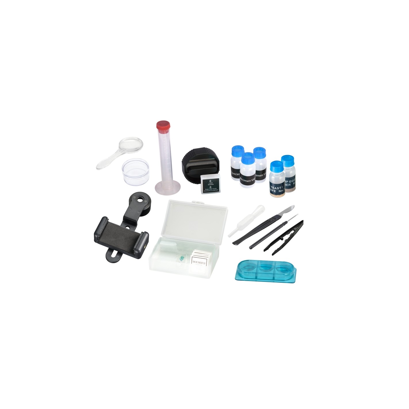 - Included: Microscope, smartphone holder, eyepieces, specimens