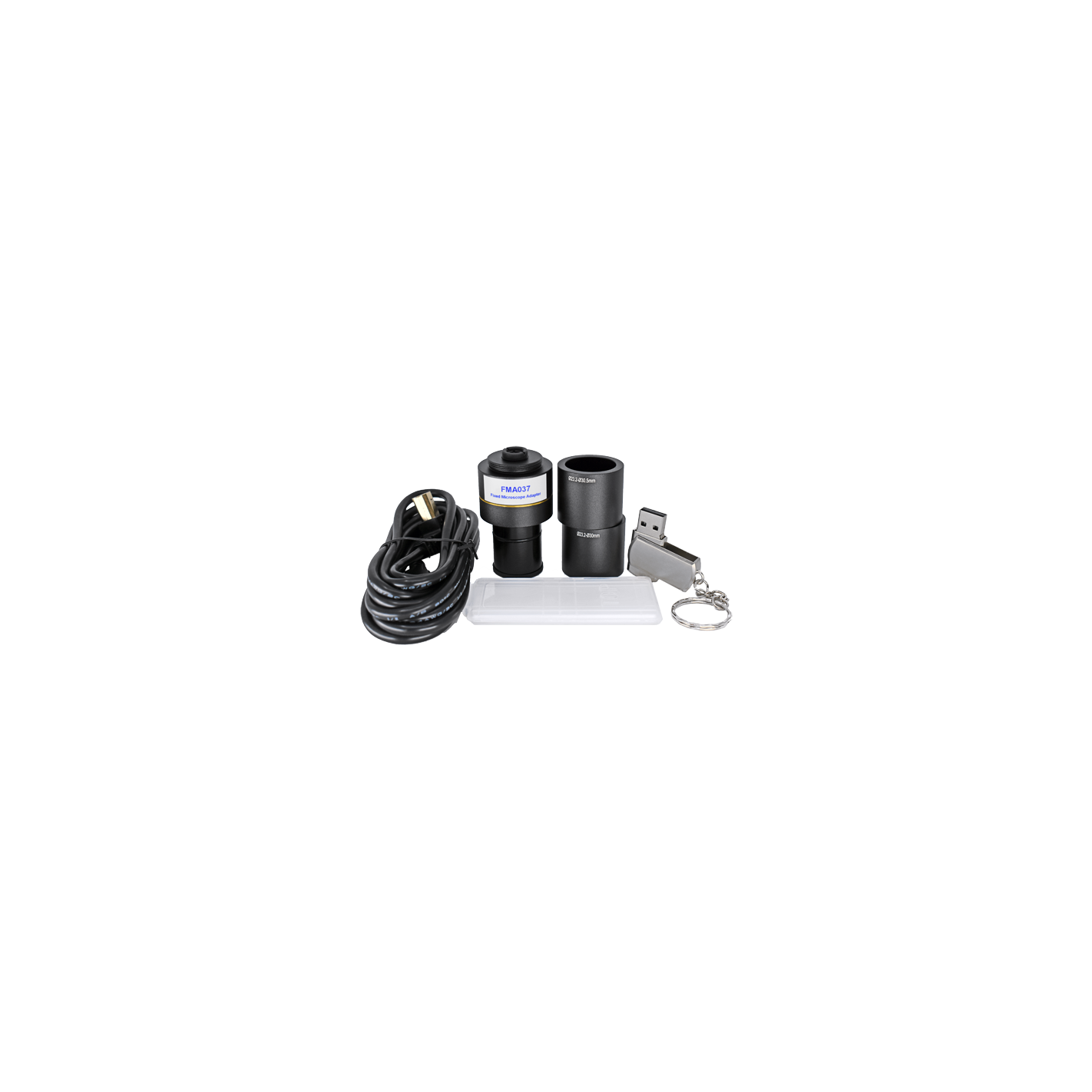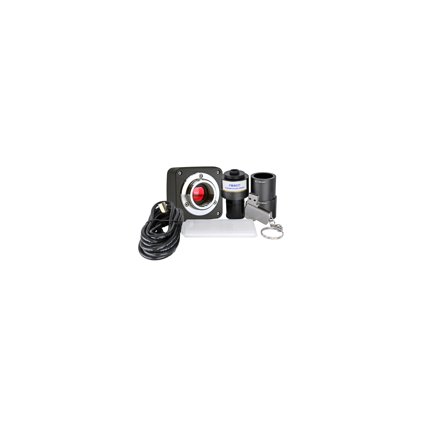 The camera can be connected to a desktop computer or compatible mobile device via WiFi. The USB port is used for power only, from a USB-bus connection, or by using the included USB power adapter. Thanks to its built-in C-mount compatibility and 23 mm reducer lens adapter, our camera can be attached to any instrument with a 23 mm, 30 mm and 30.5 mm C-mount or photo port. The camera is equipped with a color CMOS sensor and is supplied with a Hi-Speed USB 2.0 cable, four mounting sizes (23mm, 30mm, 30.5mm and C-mount) and instructions.