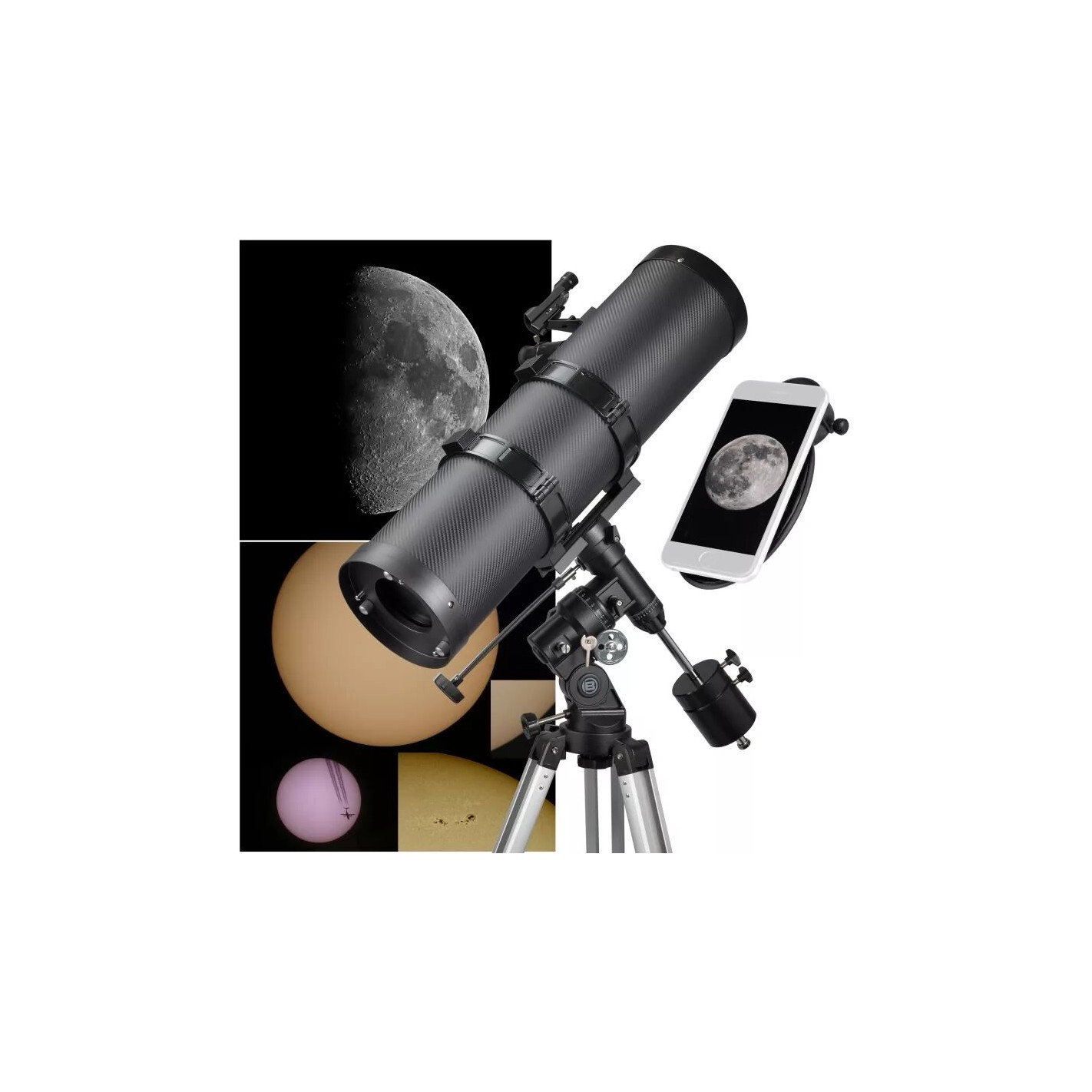 Product Information "BRESSER Pollux-II 150/1400 EQ3 Reflector Telescope with Smartphone Adapter & Solar Filter"