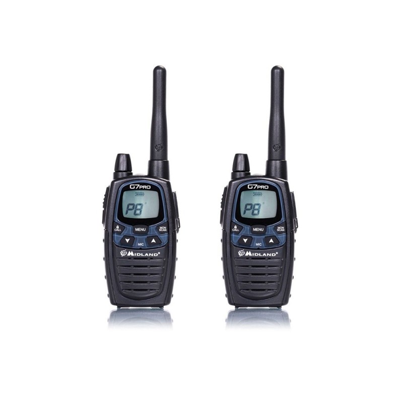 Midland walkie talkie with a more modern and robust design and LCD display.