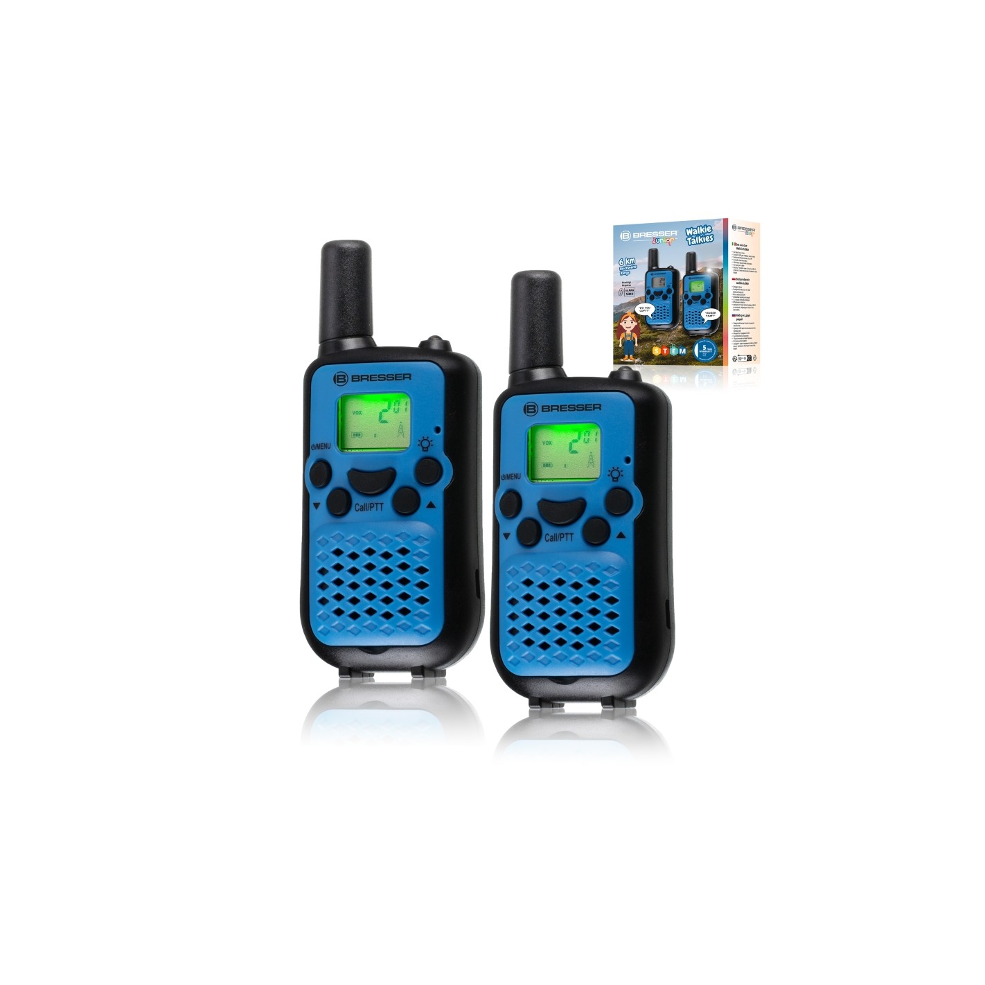 Set of 2 BRESSER JUNIOR walkie-talkies with long range up to 6 km and hands-free function blue color