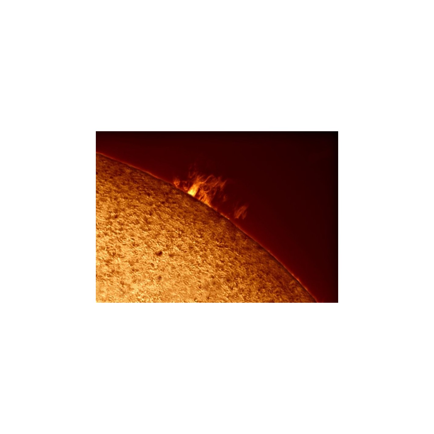 The LS100THa is a complete H-alpha Solar telescope with a diameter of 102mm (unobstructed!) and a focal length of 714mm. An internal Etalon filter with fine tilt adjustment by air pressure controlled by the Pressure Tuner system allows to maintain throughout the observation a bandwidth