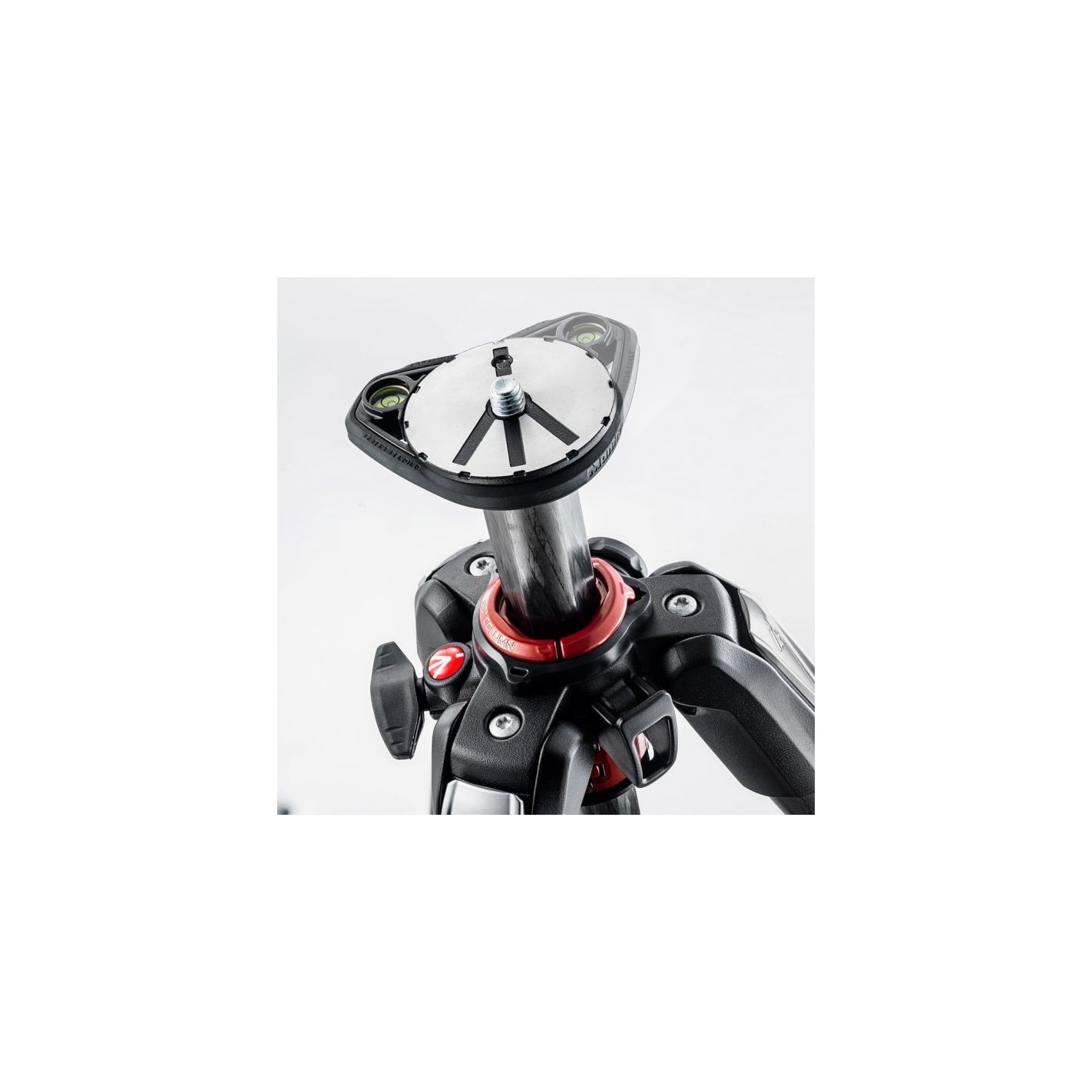 A spirit level is also incorporated at the top of the center column for more precise framing. This level rotates absolutely freely around the center column, so that it can be positioned in the easiest way to observe it while adjusting the tripod, without being obscured by the head or camera.